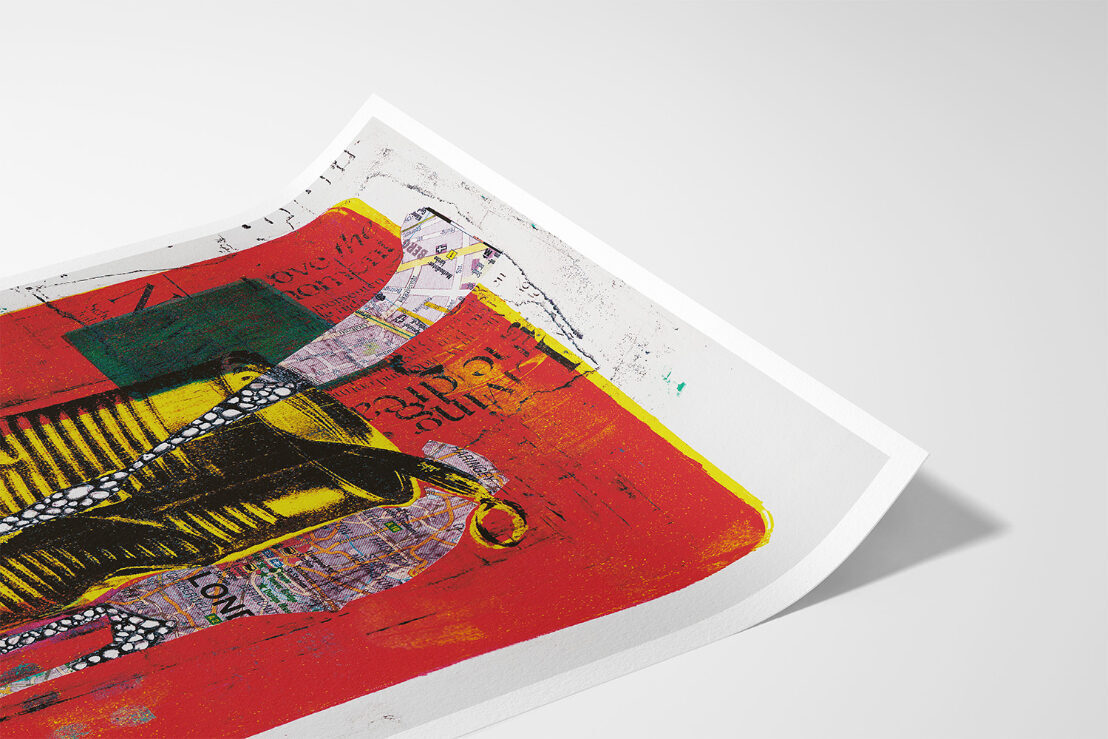 Ik gebruik voor deze print 308 grams Hahnemühle Photo Rag. Dit papier laat de gelaagdheid en de nuances van de monoprint volledig spreken op het formaat van A1 (59,4 x 84,1 cm). De print behoudt hierdoor de authentieke uitstraling van het originele werk op papier. Ik controleer elke afdruk uit de beperkte oplage van 25 stuks persoonlijk. Daarna signeer en nummer ik het werk met de hand.
