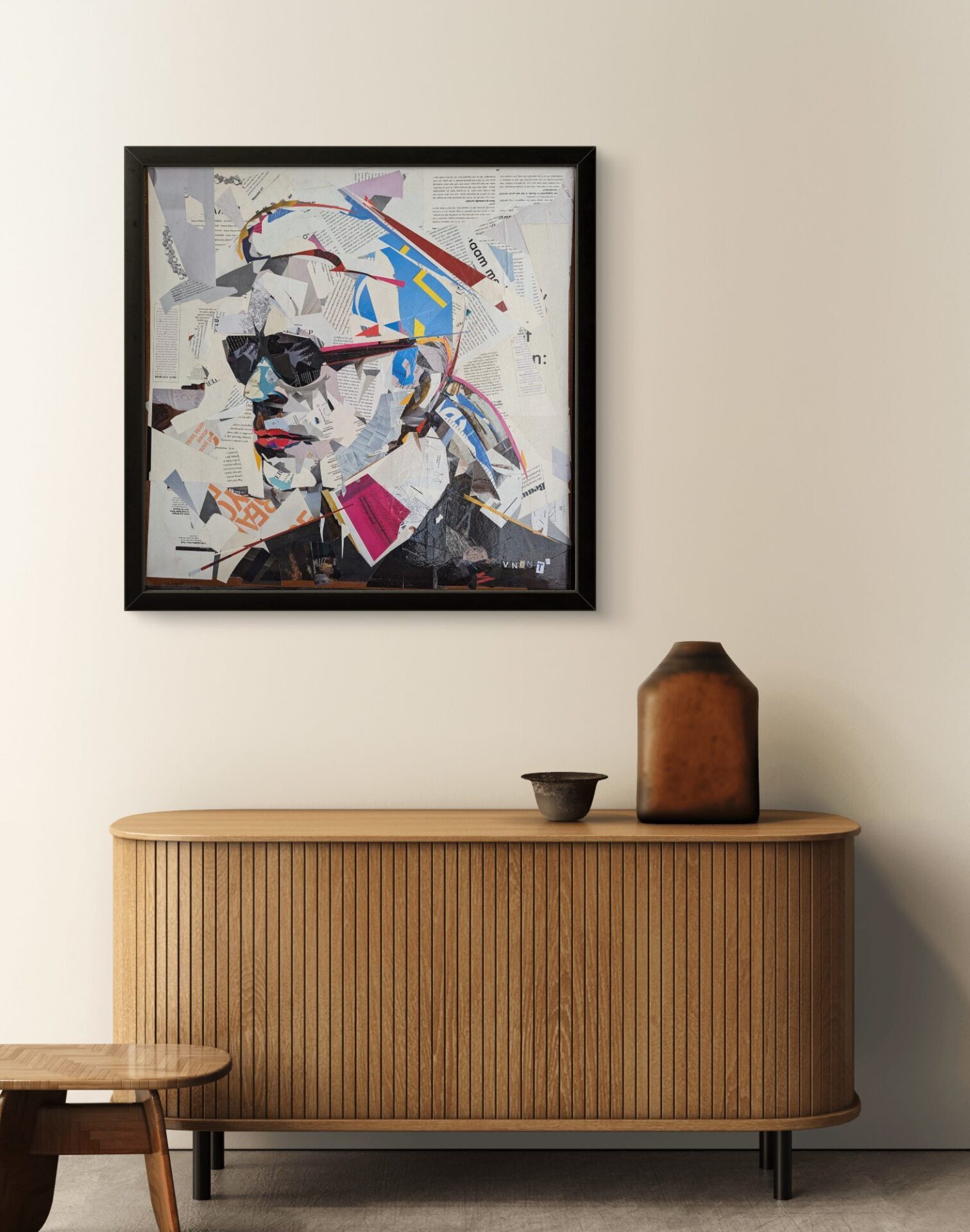 Het originele collagewerk van Karl Lagerfeld is een eerbetoon aan een mode-icoon, vertaald naar mijn kenmerkende gelaagde stijl. Ik heb dit werk opgebouwd uit talloze fragmenten van papier en drukwerk, waarbij de contrasten en de scherpe lijnen die Lagerfeld typeerden, centraal staan.