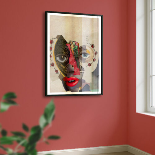 Met de Madamm kunstprint haal je een uniek gecomponeerd beeld in huis. Dit werk ontstond in mijn studio als een fysieke collage. Ik combineer handmatig diverse beelden en materialen tot één krachtig geheel. Als creatieve maker zoek ik in deze collage naar een balans tussen vorm en contrast. De complexiteit van dit handwerk zie je direct terug in de reproductie.