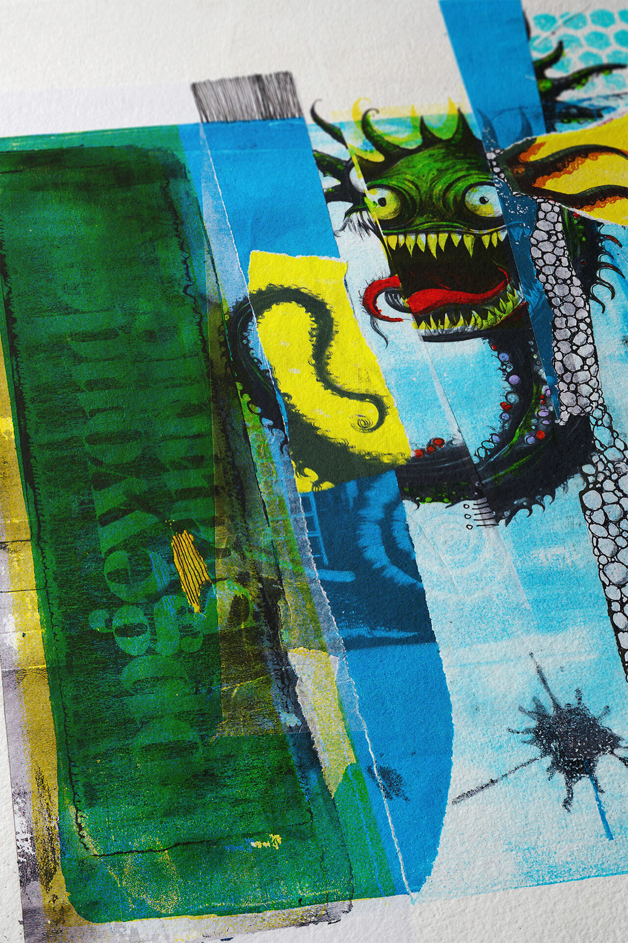 Techniek: Replica van mixed media (collage en monoprint op gelplaat)